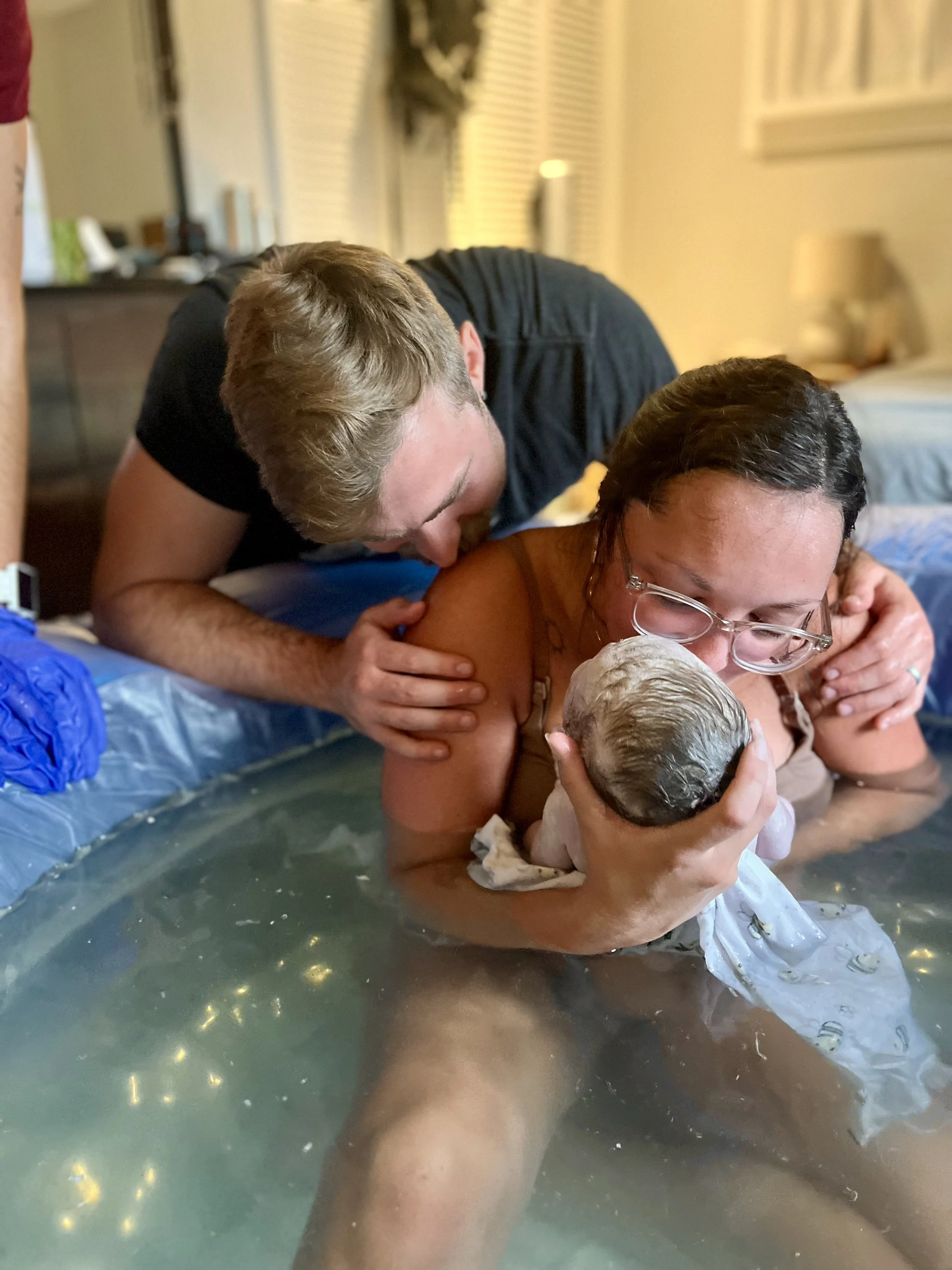 I felt hands on my lower back, reminding me to keep my body submerged for delivery. I heard instructions. I felt exhausted.